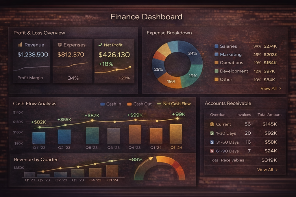 Problem: Sales and finance KPIs were scattered, with limited trend visibility (YTD/YoY/MoM). Solution: Built Sales + Finance dashboards for trends, P&L, cash flow and performance tracking. Impact: Faster reporting and clearer decision-making.